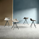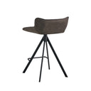 El taburete YRAG destaca por su diseño contemporáneo y materiales de alta calidad. Su asiento acolchado combina tejido 100% poliéster en la parte frontal con piel sintética en la trasera, asegurando confort y resistencia. Las patas de hierro negro con estructura piramidal aportan una estabilidad sólida y duradera, ideal para ambientes modernos que buscan funcionalidad y estilo.