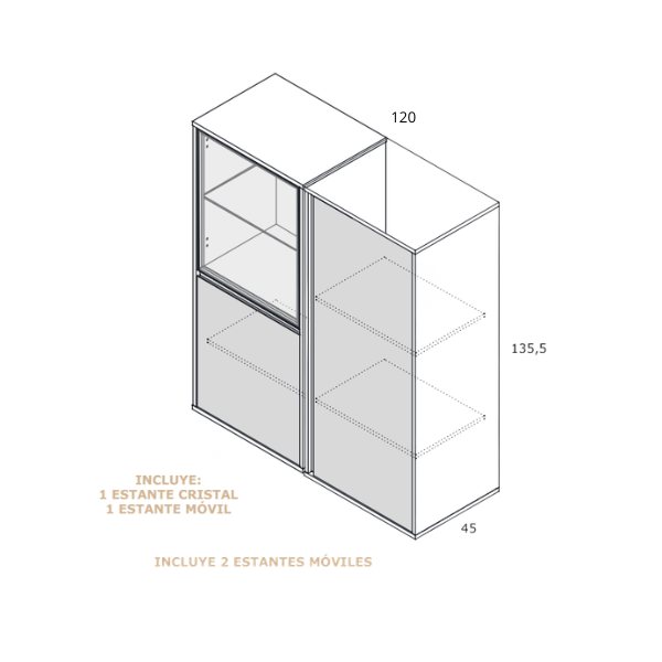 | Vitrina Baja Cristal | 135,5 cm | 120 cm | 45 cm |